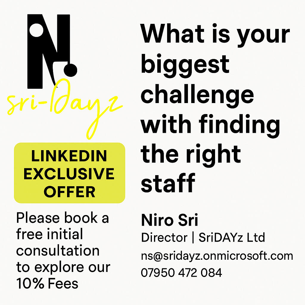 📘 Part 6: The Birth of SRIDAYZ LTDIn late 2024, as my mum was living at home on her own in Coventry and with my yearning to set up my business, I decided to move back to Coventry to look after her and set up my business.SRIDAYZ Ltd was borne to disrupt the Recruitment Agency Sector and focus on Retention as well as Hiring needs to any sector that was seeking assistance at budget reducing costs.Off Course, The Education sector is where my main focus is and as a secondary element to the business, I wanted to offer a complete Educational Service which includes bespoke behaviour management training in schools, Team Facilitation and change transformation, day to day Science Supply and online Science Tutoring because I still do miss teaching.