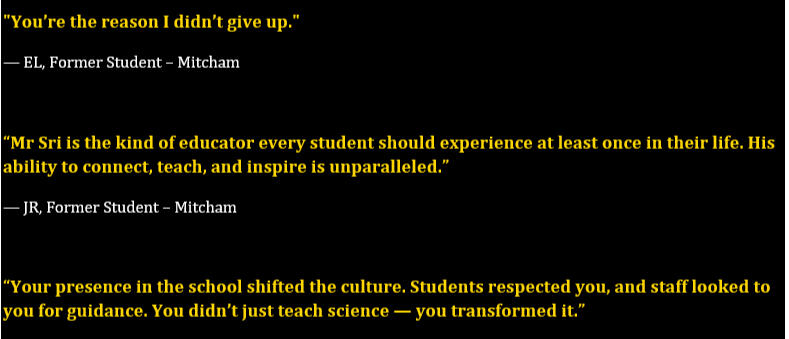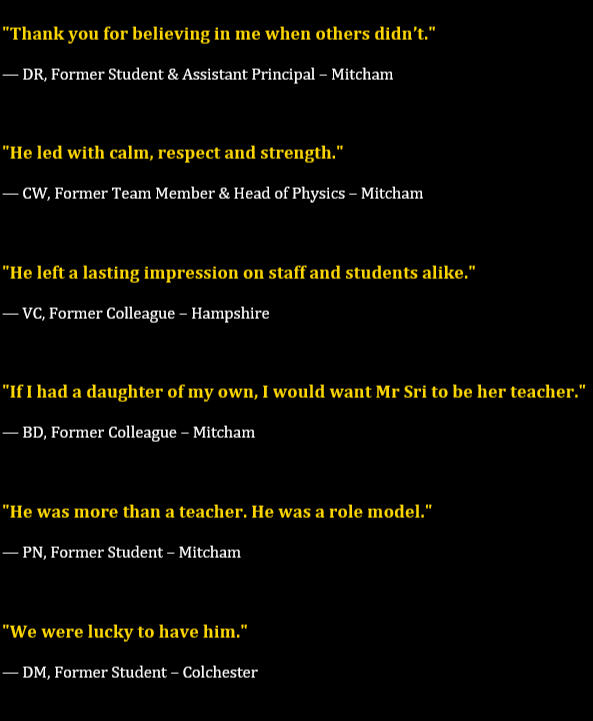 Led by Niro S., Sridayz Ltd brings together 19 years of experience as a Science Educator and 12 years as Head of Science, plus 5 years in specialist recruitment.